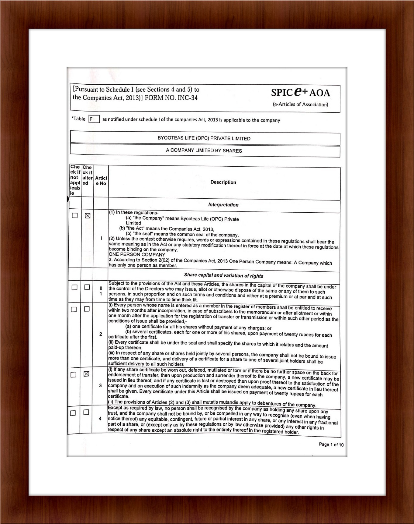 A COMPANY LIMITED BY SHARES