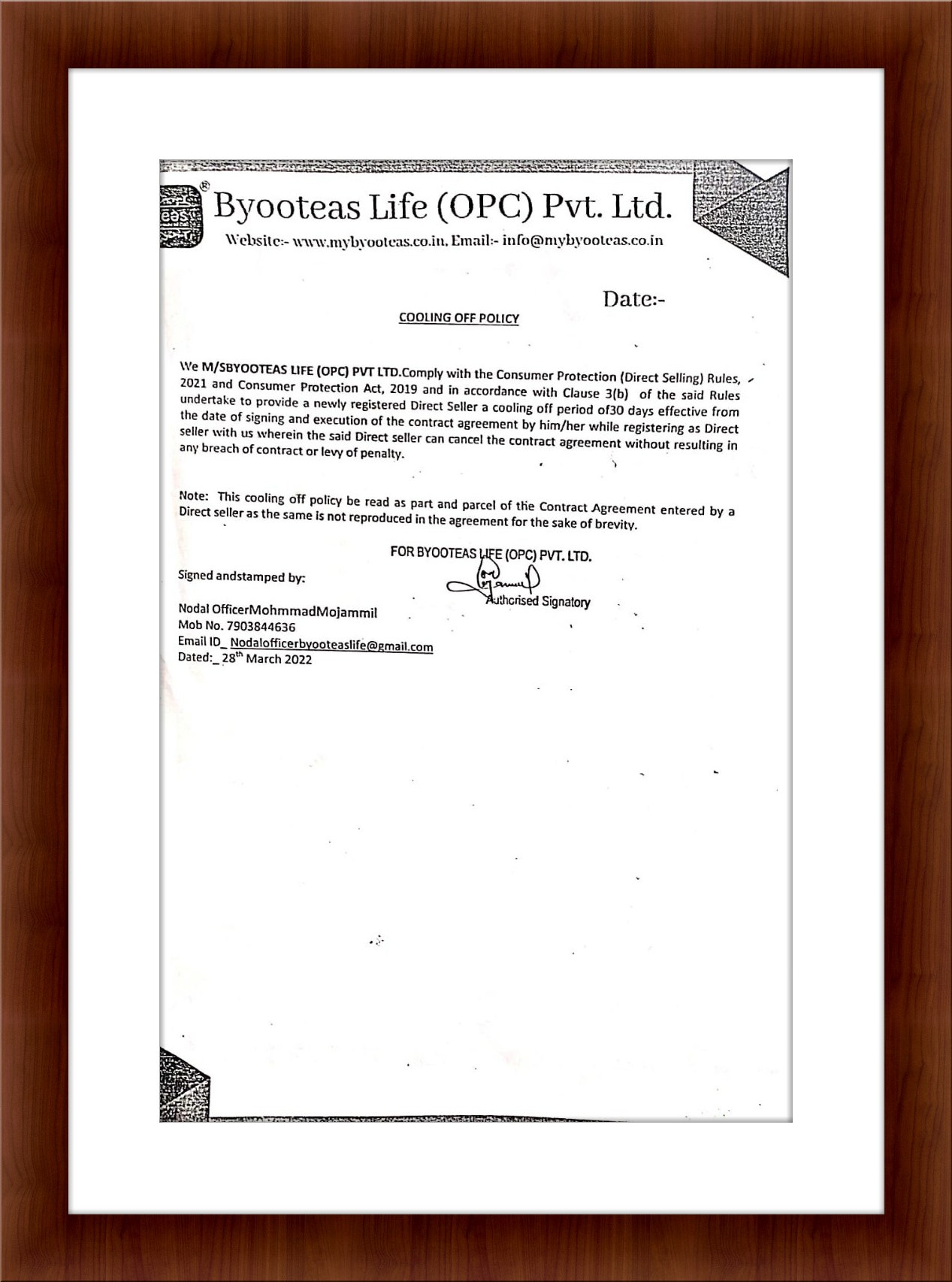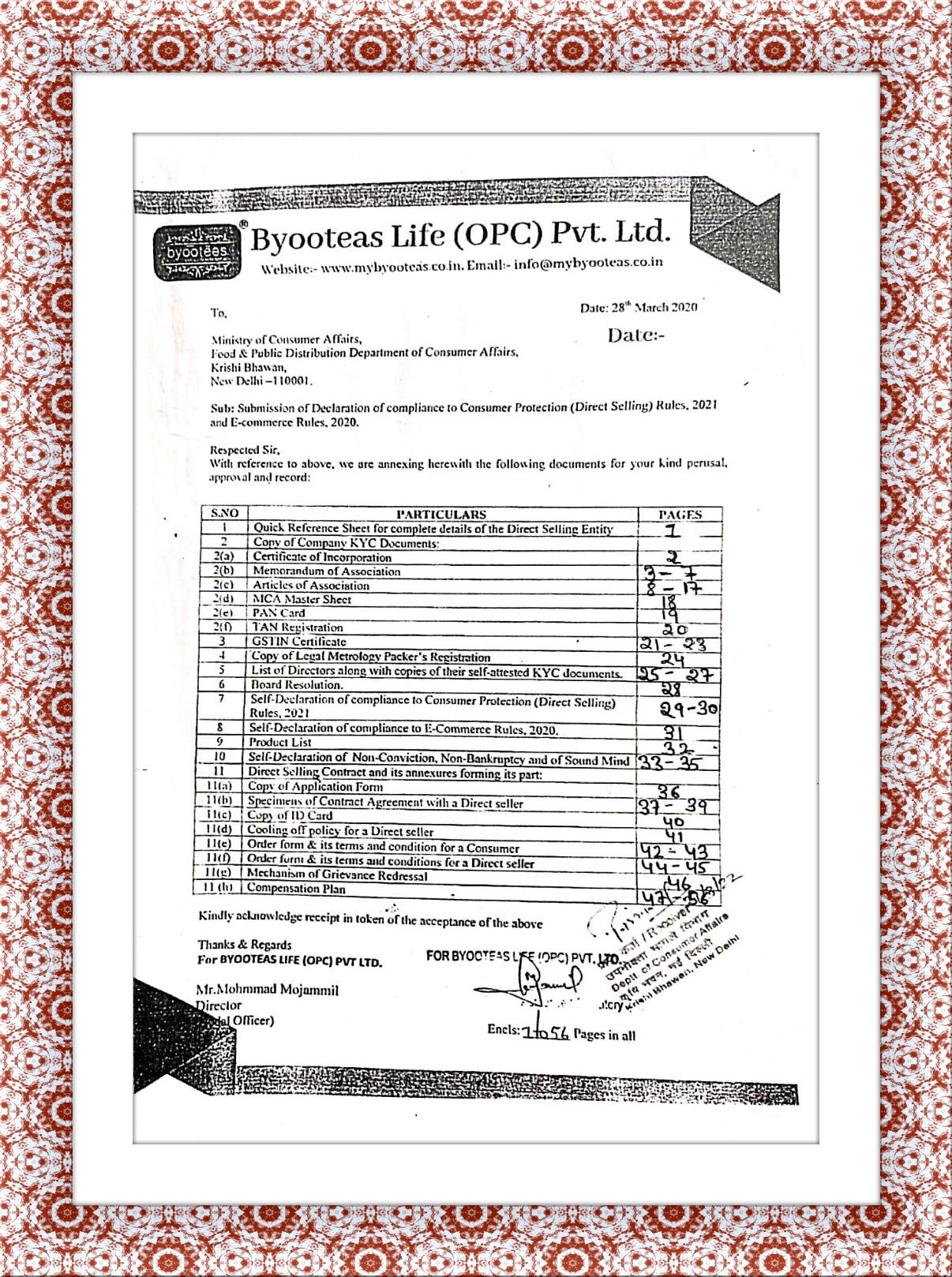 SUBMISSION OF DECLARATION OF COMPLIANS TO CONSUMER PROTECTION (DIRECT SELLING)