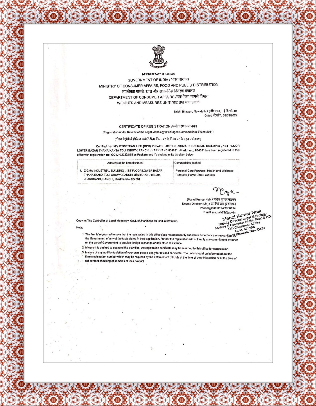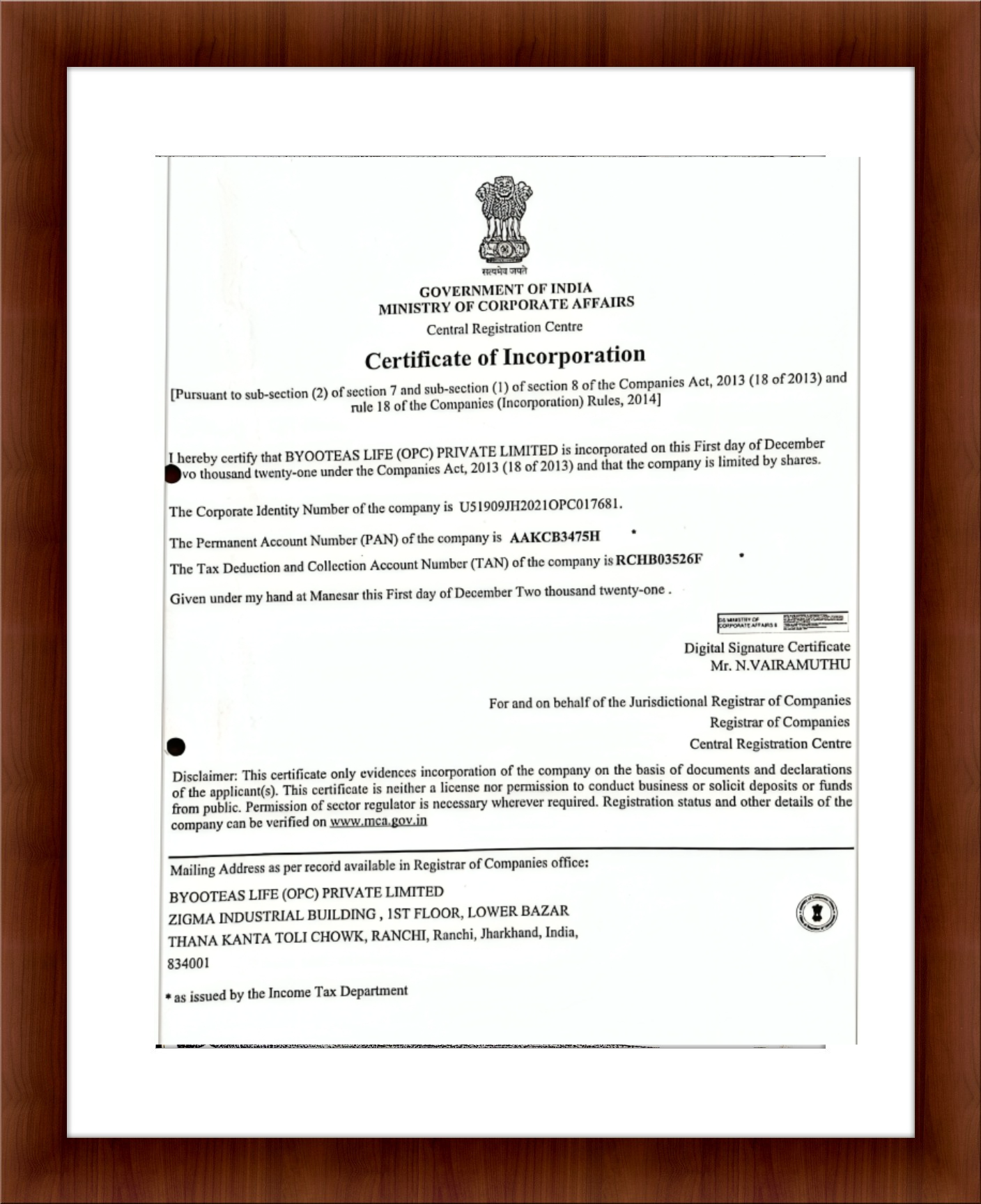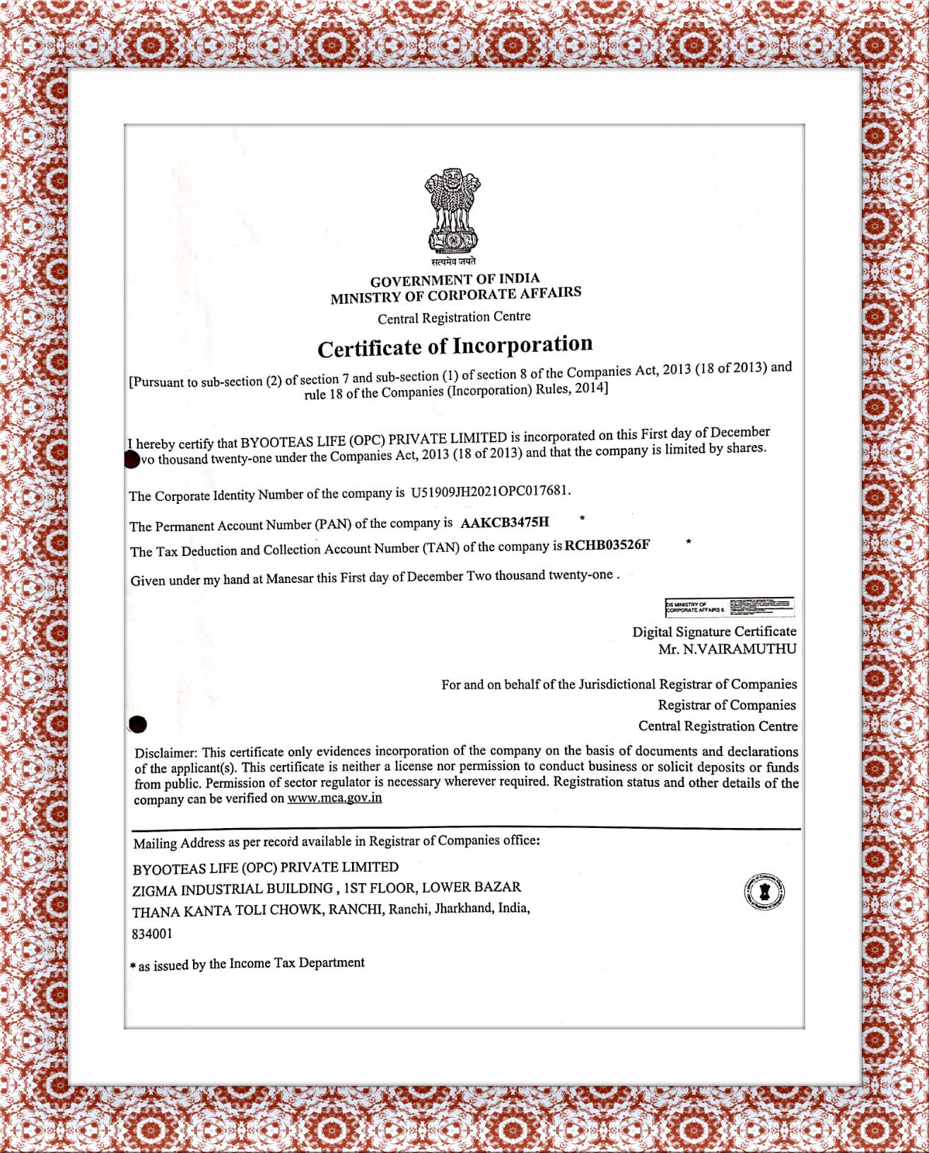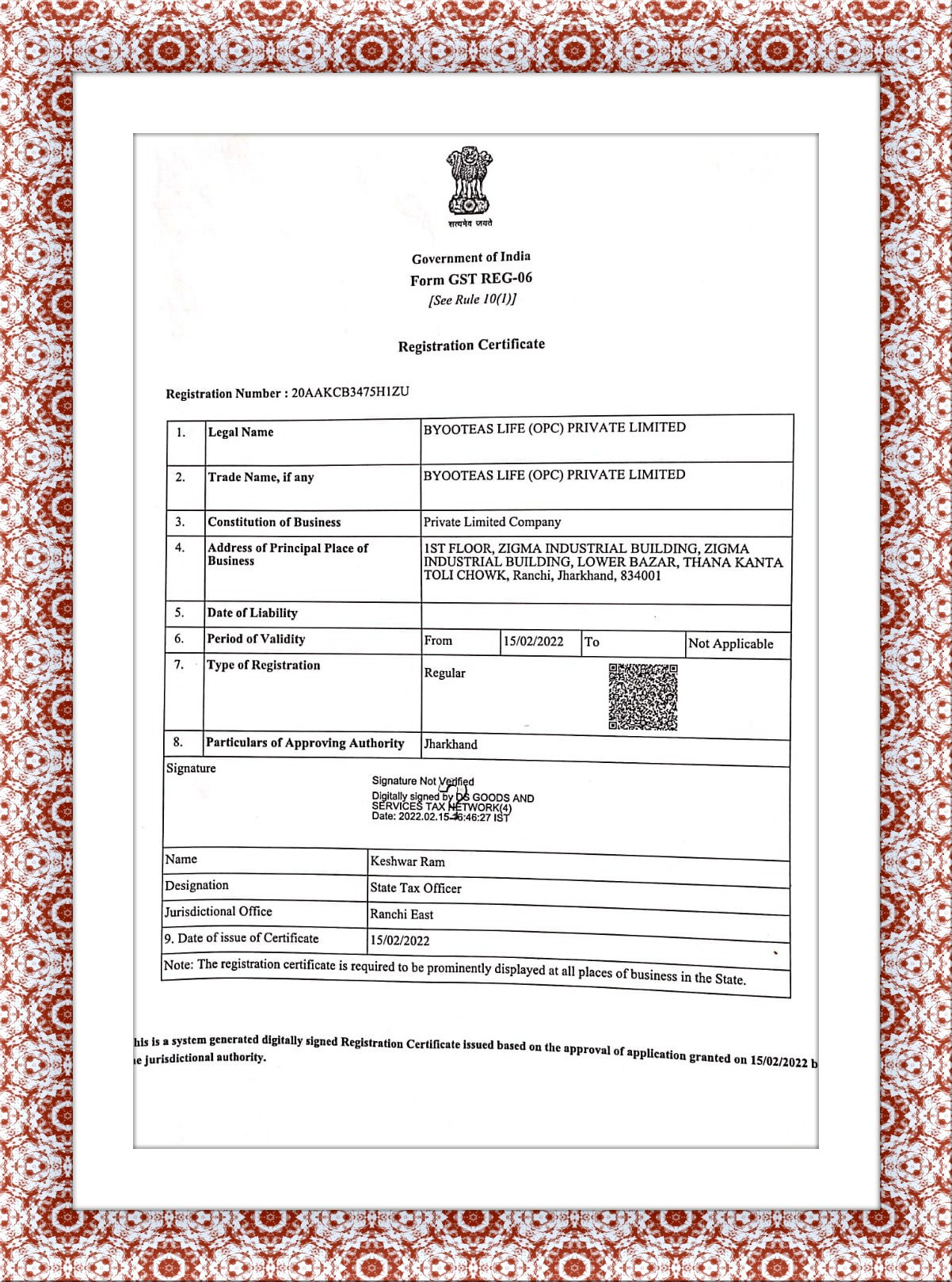 REGISTRATION CERTIFICATE