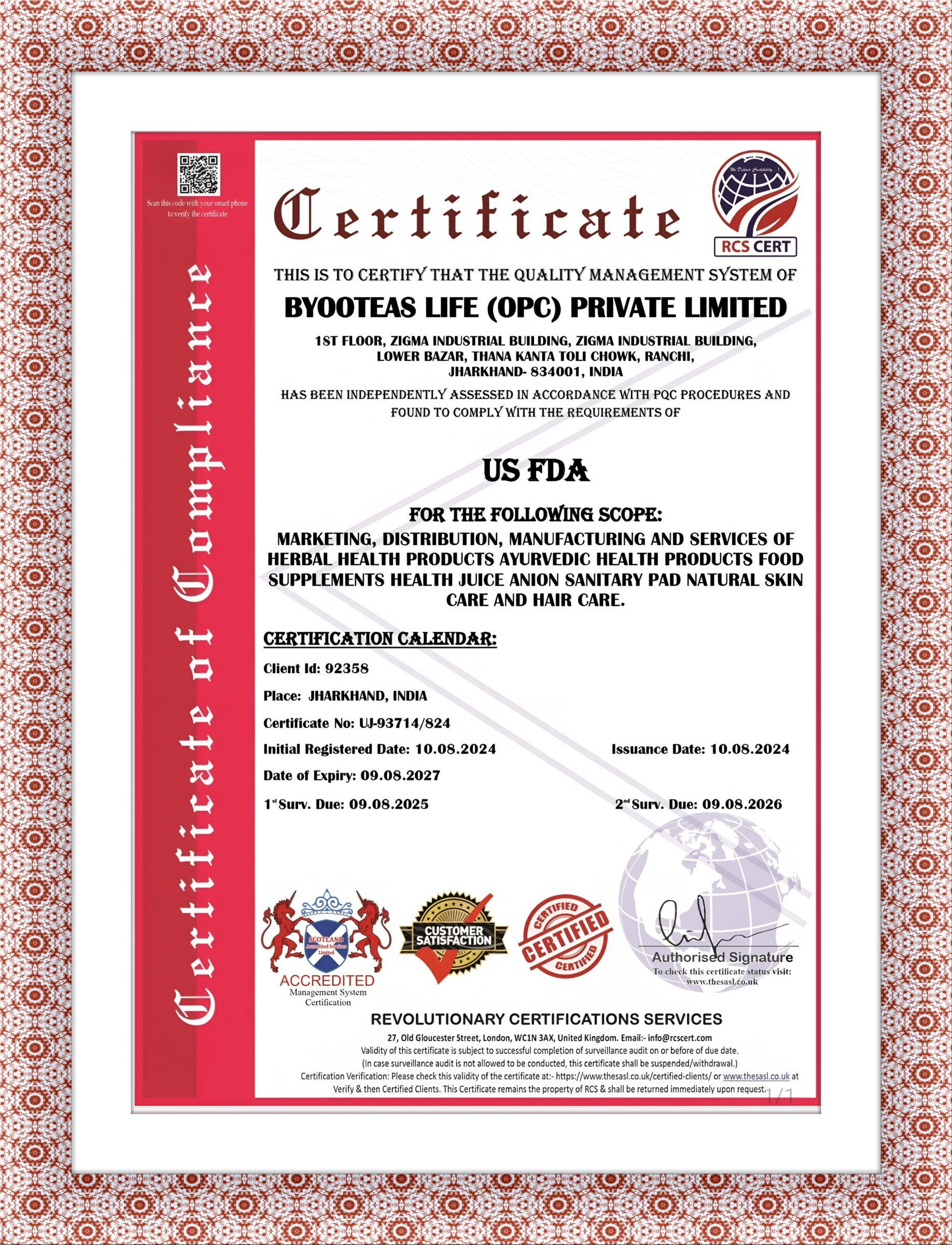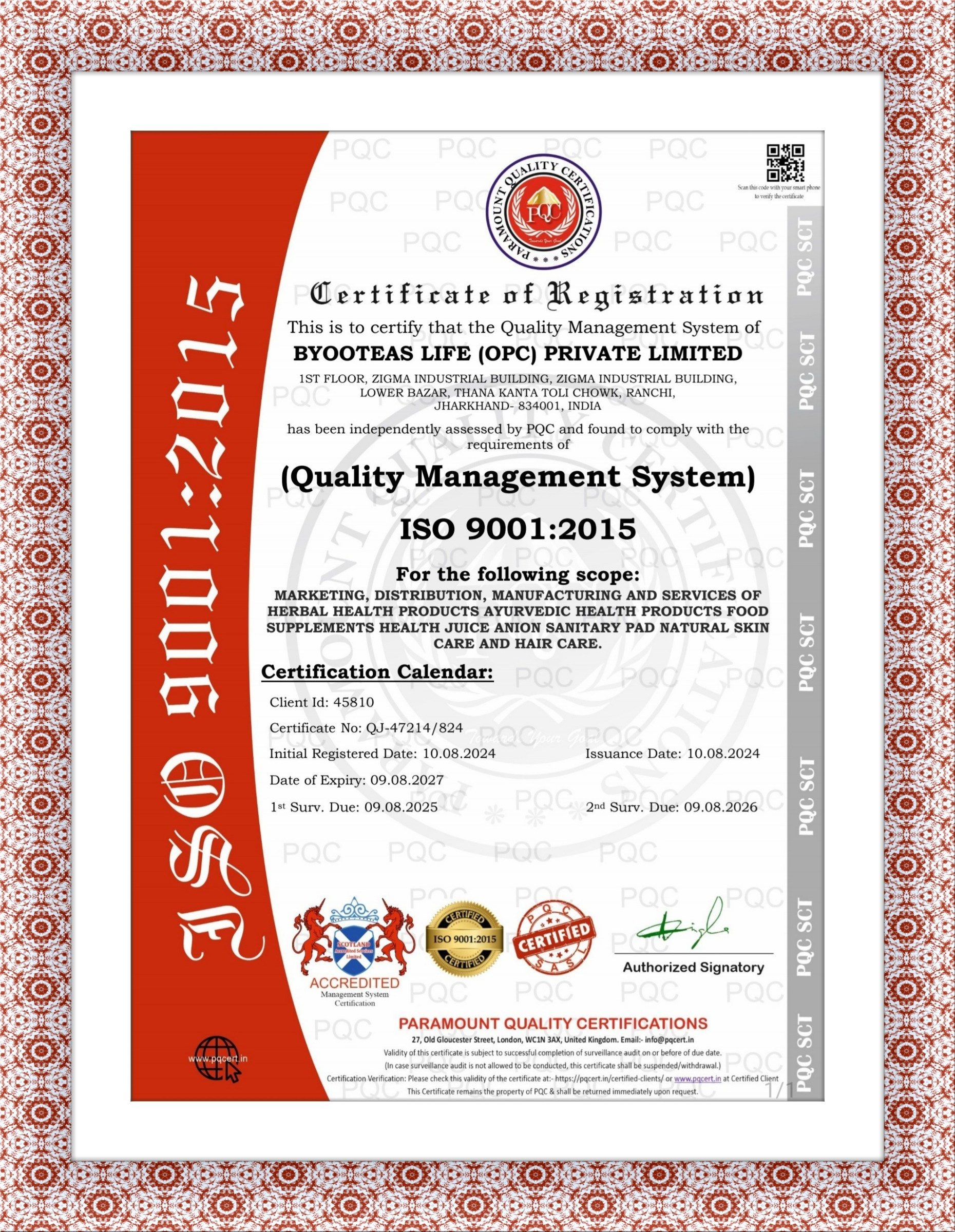 CERTIFICATE OF REGISTRATION (QMS)