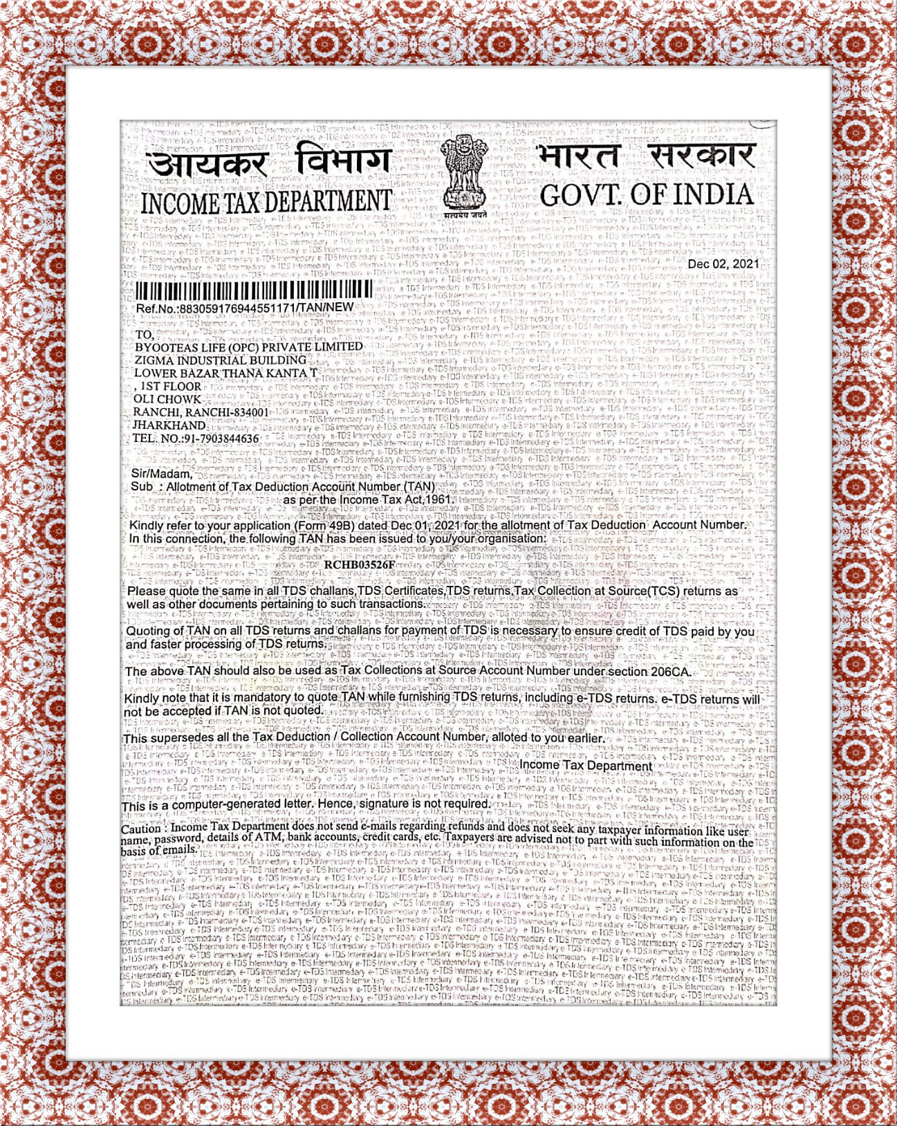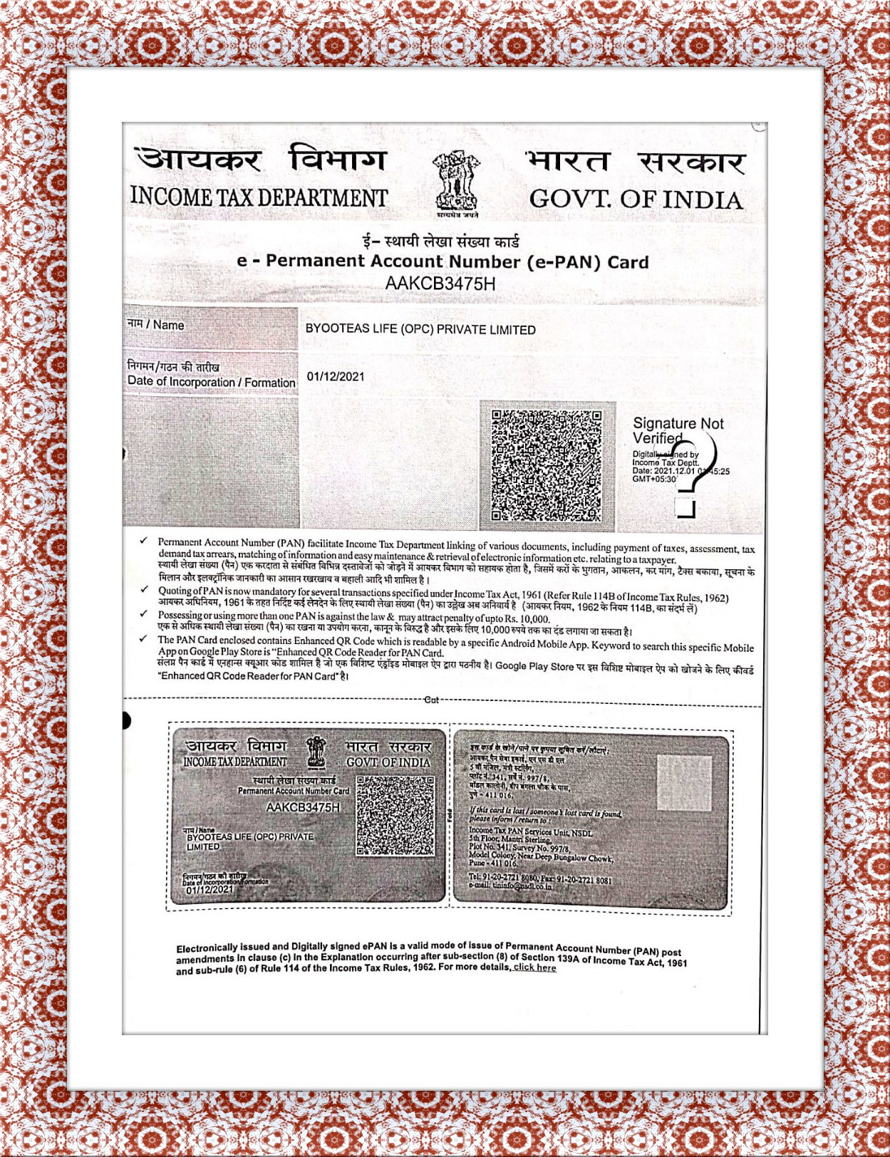 E-PERMANENT ACCOUNT NUMBER (e-pan) CARD